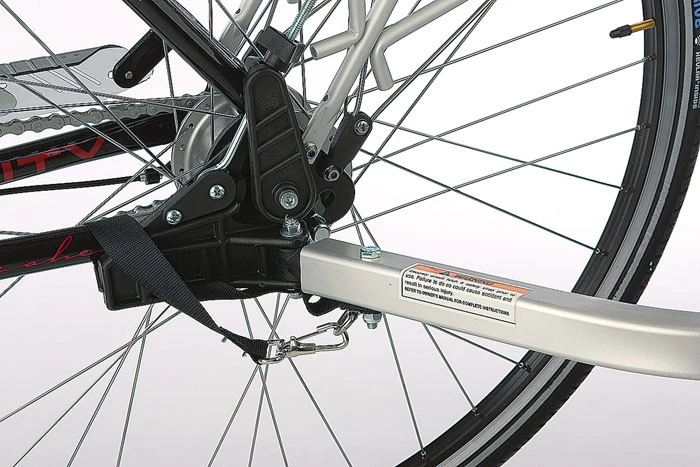 Verbleibt an der Deichsel und kann sehr einfach an alle Räder mit klassischem