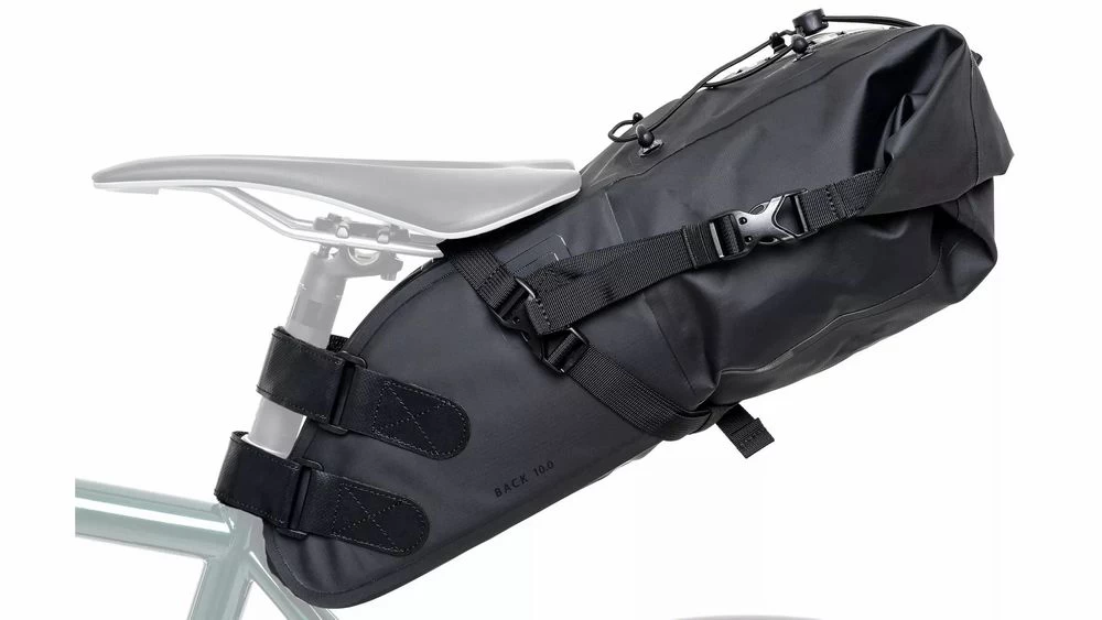 Die „Mile Grinder Back 10“ kannst du mit Riemen ganz einfach an der Sattelstütze deines Bikes befestigen. An den Kontaktstellen zwischen Stütze und Riemen befinden sich rutschfeste Befestigungen, damit in erster Linie die Sattelstütze ohne Kratzer davonkommt und die Tasche im Gelände nicht verrutscht.