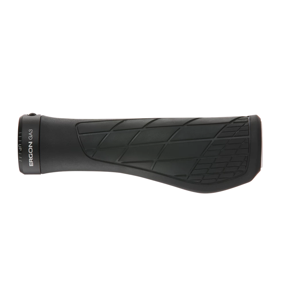 Die GA3-Serie vereint Entlastungsvorteile und Handgelenkunterstützung eines ergonomischen Flügelgriffs mit der Bewegungsfreiheit eines eher runden MTB-Griffs. Die superweiche, UV-stabile Gummimischung bietet ausgezeichnete Griffigkeit und wird exklusiv für Ergon in Deutschland entwickelt und hergestellt. Sie sorgt selbst auf anspruchsvollen Trails für beste Kontrolle. Innenliegende Aluklemmen bieten auch bei breitem Griff großzügigen Platz. Klemmt auf Carbonlenkern mit höchster Verdrehfestigkeit. Empfohlen für Handschuhgrößen Small / Medium (6,5 – 8,5) oder Bevorzugung von Griffen mit geringerem Greifumfang.
