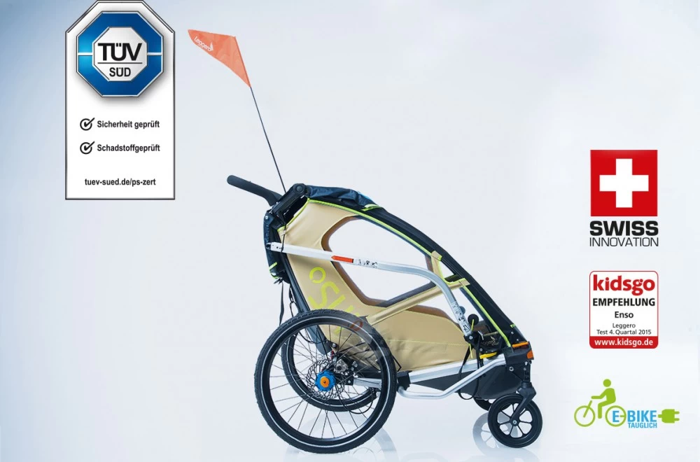 Für den Leggero Enso wurden ausschliesslich hochwertige Materialien verwendet. Die Fahrgastzelle ist aus hochwertigem Aluminium gefertigt. Die Verbindungselemente bestehen aus glasfaserverstärktem Polyamid. Die textilen Teile sind einerseits aus einem strapazierfähigen Cordura Textil und zum anderen aus spezialbehandelten Rip-Stop Textilien gefertigt. Die hochwertigen Standardkomponenten lassen sich auf Wunsch austauschen. Bis ins Detail ist derLeggero Enso ein geniales Kindertransportsystem, sogar die Pneu entsprechen hinsichtlich der Ungiftigkeit der verbauten Materialien der neusten Norm EC No.1907/2006 welche ab dem 27.12.2015 in Kraft getreten ist.