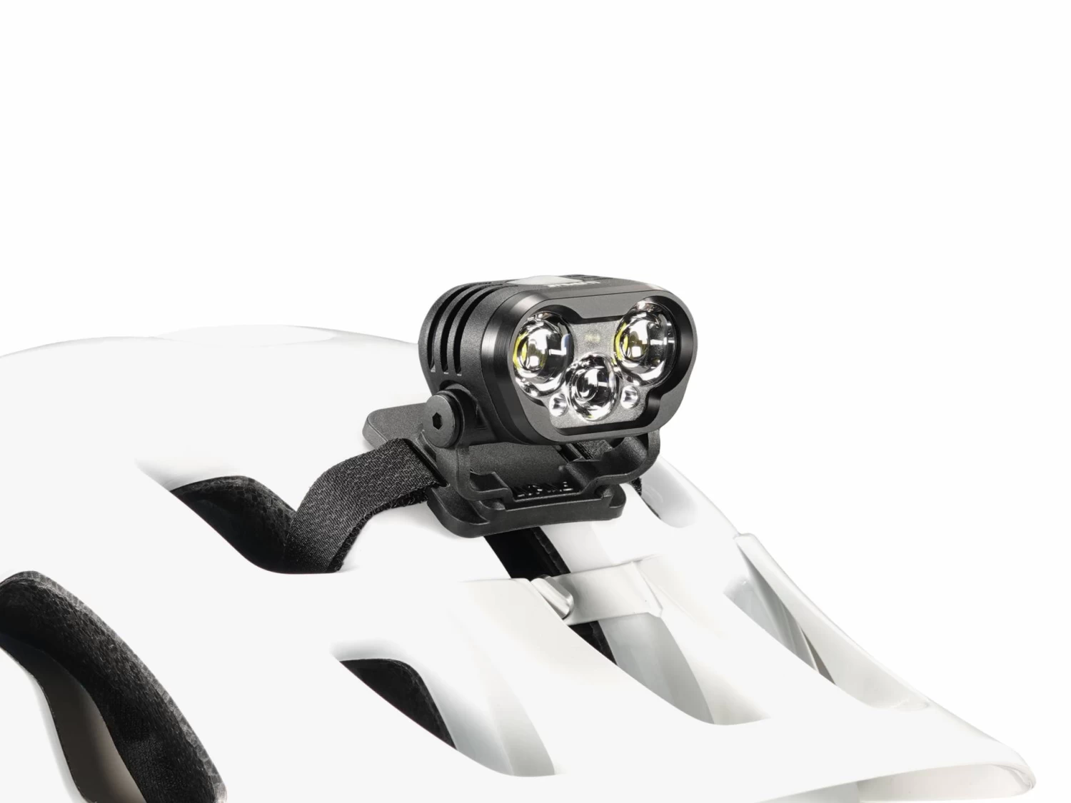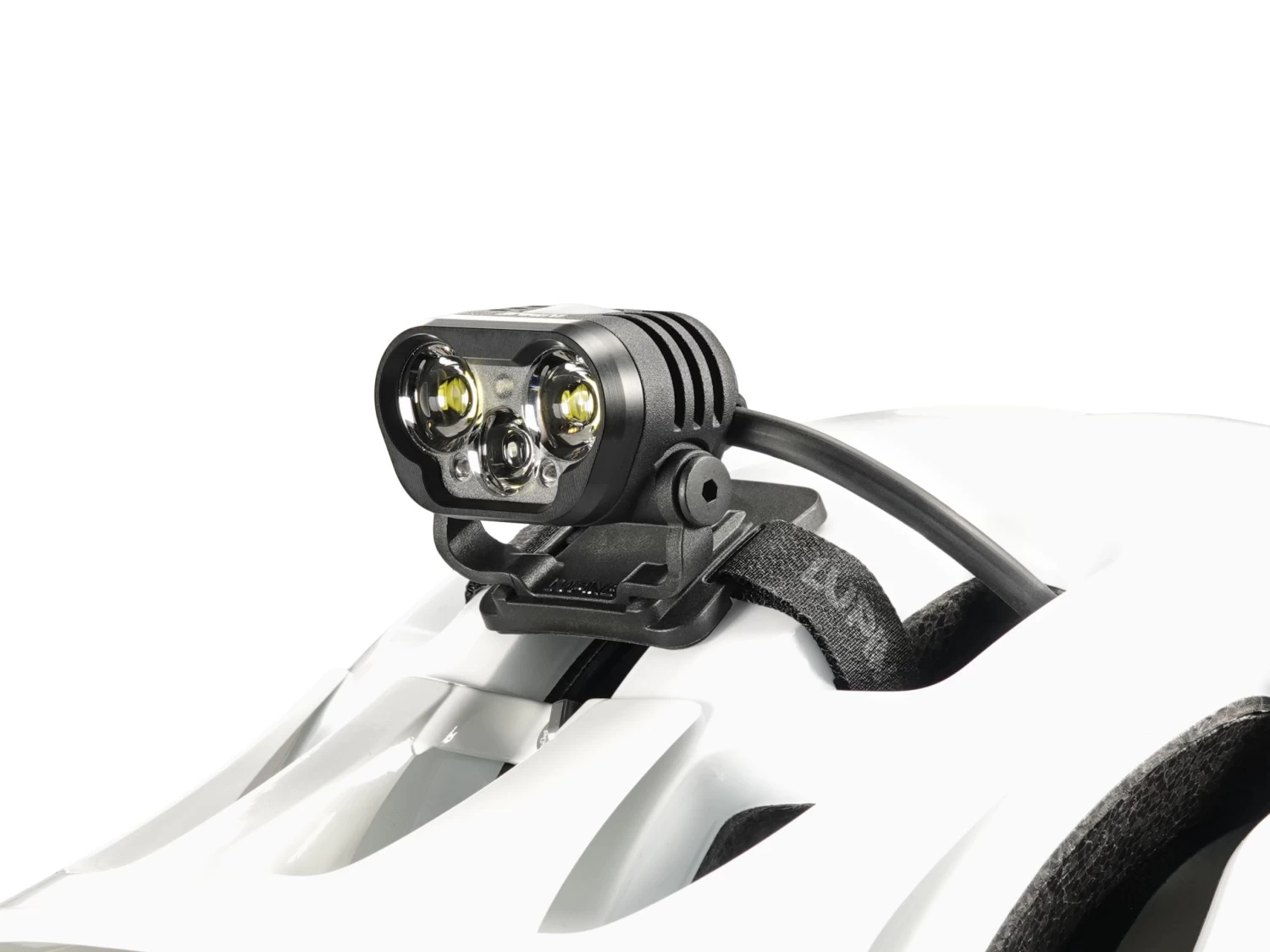 Die Blika als Helmlampe mit 2400 Lumen für Helme mit Lüftungsschlitzen. Das FrontClick System erlaubt einen