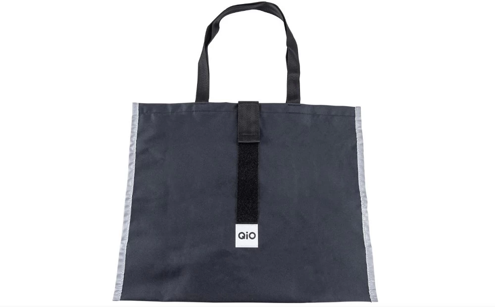 Eine Einkaufstasche, die klein gefaltet überall hin mitgenommen werden kann, der Verschluss erfolgt über ein Klettband. Zwei lange Trageriemen lassen sich bequem über die Schulter legen, kleines Innenfach für Wertsachen – reflektierende Einfassbänder sorgen für gute Sichtbarkeit. Für QiO Frontgepäckträger, inkl. KLICKfix-Adapterplatte.
