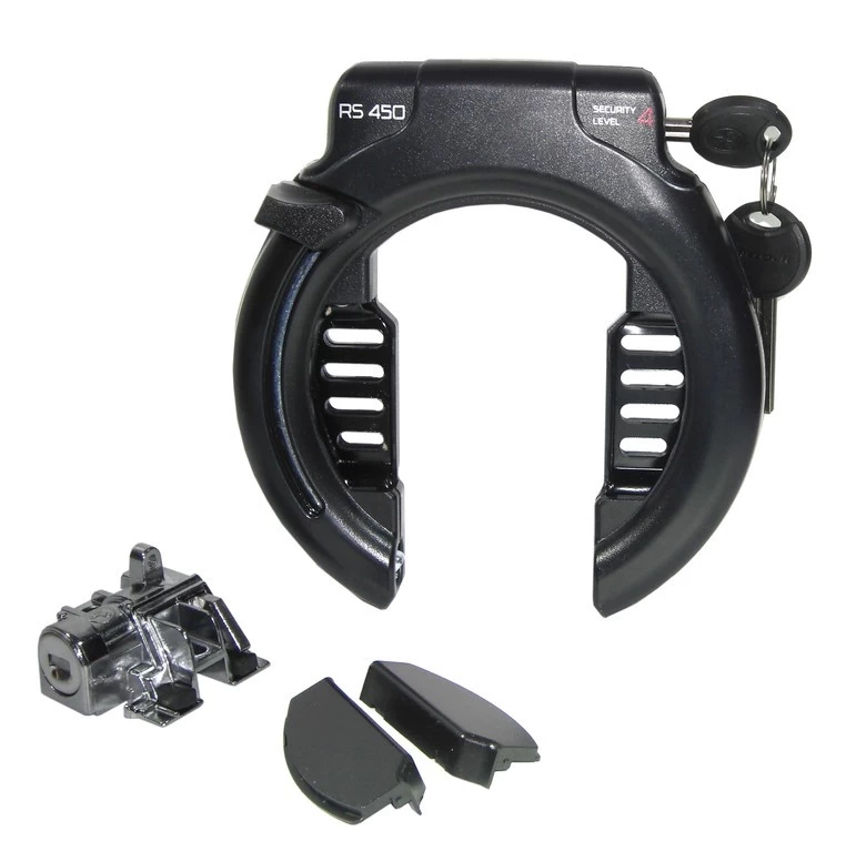 Das korrosionsgeschütze Ringbügelschloss hat die hohe Sicherheitsstufe 4, wiegt moderate 650 Gramm und besitzt eine Kindersicherung.